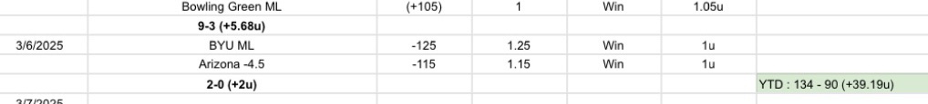Bets are to win 1u unless specified otherwise. Check back for updates.