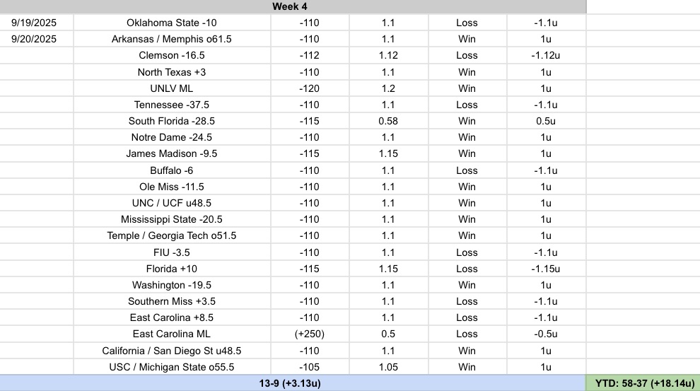 W4: 13-9 (+3.13u)