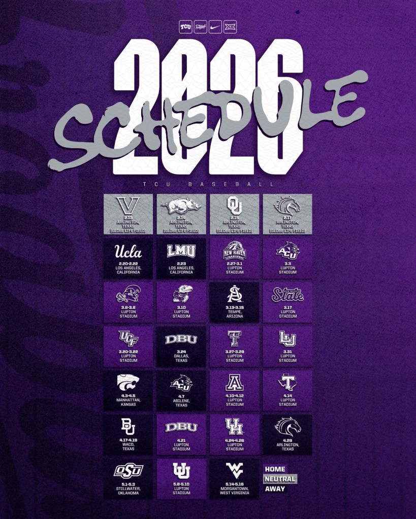 As mentioned earlier, TCU is returning lots of production from a solid 2025 team that almost hosted. With Sawyer Strosnider, Noah Franco, and Chase Brunson anchoring the lineup and Tommy LaPour fronting a veteran rotation, TCU has one of the highest ceilings in the country. If the portal additions and bullpen hold up, this can be a 50-win caliber team. We will get an early look in the Shriner’s Showdown as the Frogs have Vanderbilt, Arkansas, and Oklahoma scheduled.
