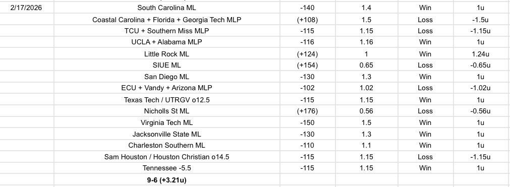 9-6 (+3.21u)