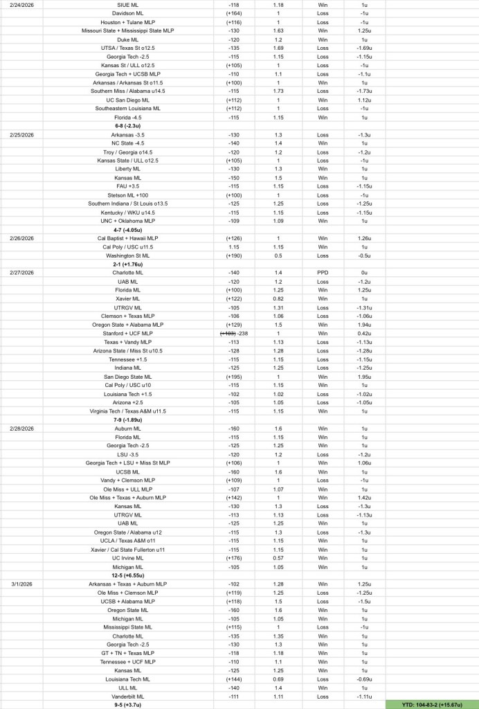 YTD: 104-83-2 (+15.67u)